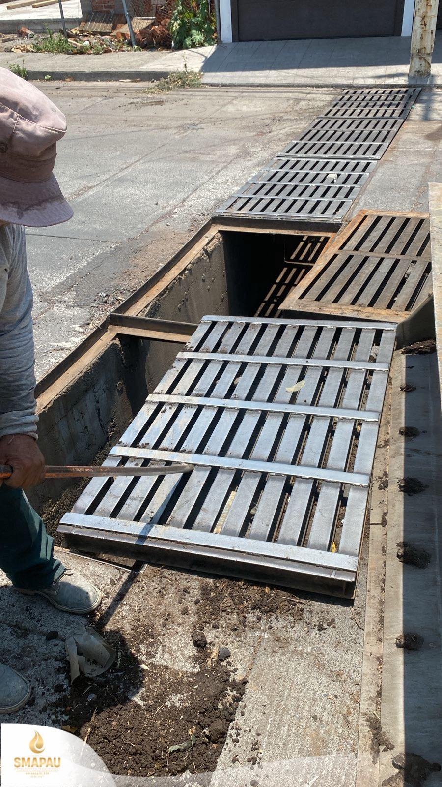 SMAPAU realiza labores de desazolve en bocas de tormenta (Alcantarilla) sobre el Blvd. Morelos