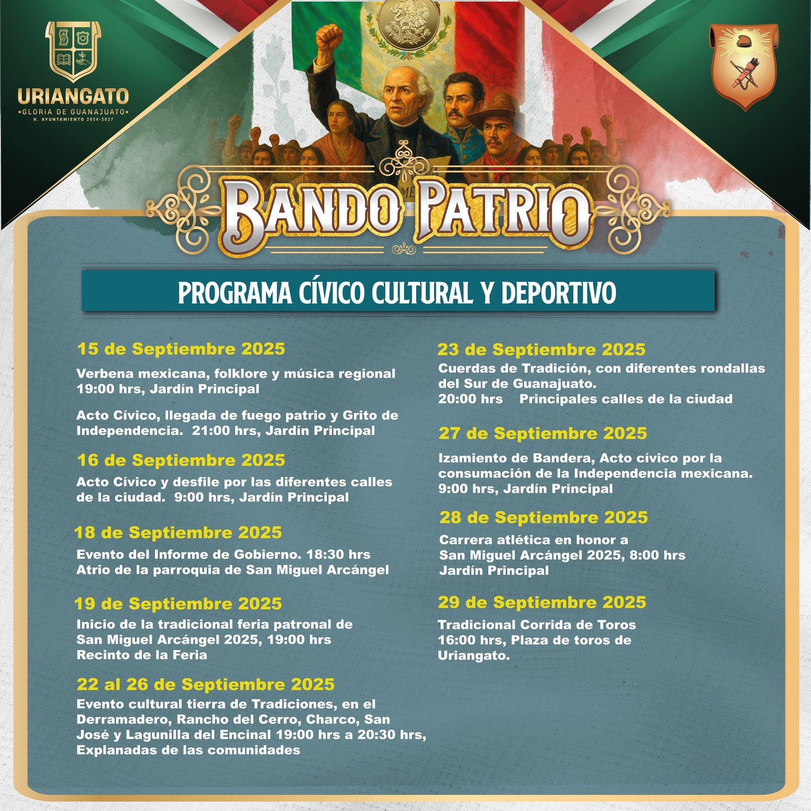 Compartimos las actividades del Bando Patrio a realizarse en todo el mes de Septiembre