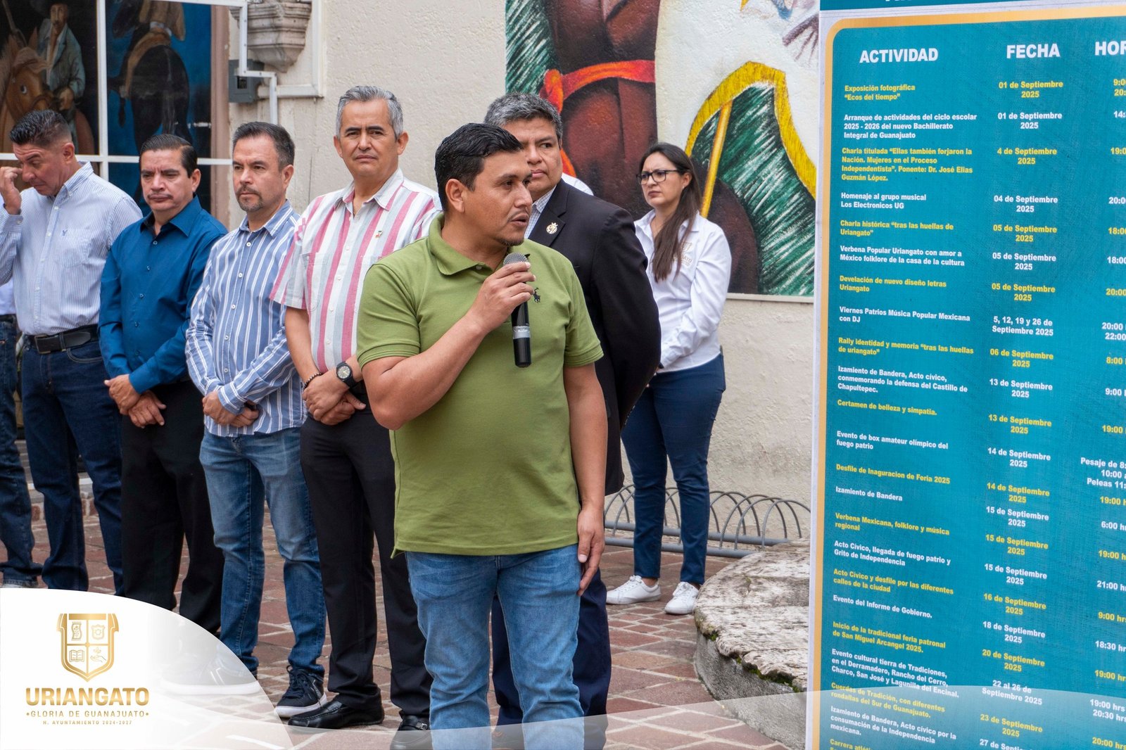 El alcalde Juan Carlos Martínez Calderón JUAN Amigo acompañado del H. Ayuntamiento, directores de las diferentes áreas y personal administrativo presentaron de manera oficial las actividades cívicas, deportivas y culturales que se estarán llevando a cabo en el mes de Septiembre