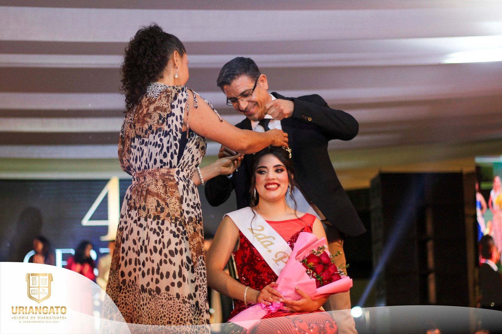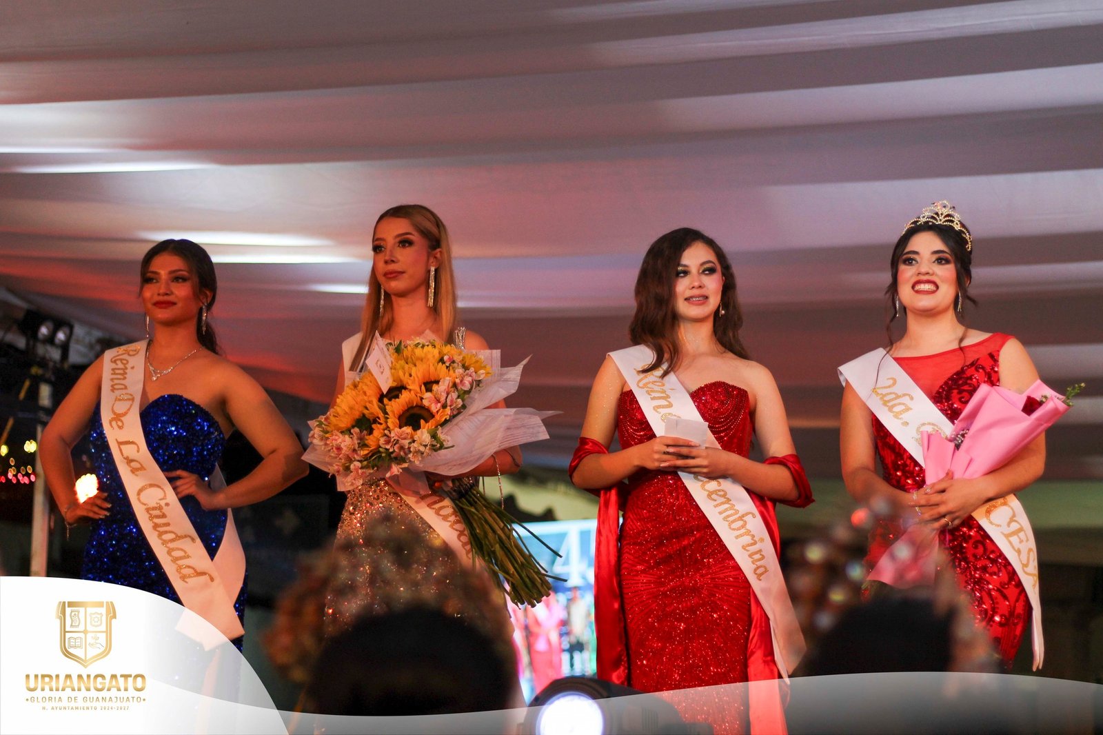 De igual manera, se realizó la entrega de bandas a quienes representarán con orgullo distintas celebraciones de nuestro municipio: Avril Anahí Cruz Díaz como Reina de la Ciudad, quien será coronada en el marco del 422° Aniversario de Uriangato; Sandra Michel Ramírez López como Reina del Carnaval; y Daniela Ambriz Ortiz como Reina Decembrina, quienes recibirán su coronación en fechas próximas.